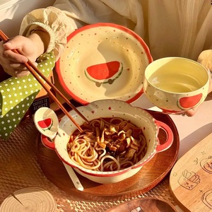 【西瓜豪华5件套】8.5寸汤碗+盘子+饭碗+勺子+筷子