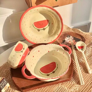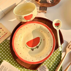 水果可颂西瓜陶瓷餐具一人食家用2025年新款可爱碗碟盘套装釉下彩