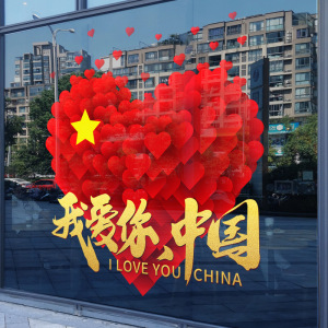 我爱你中国十一国庆节日氛围装饰静电玻璃门贴纸商场布置氛围窗贴