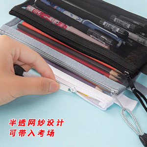 透明网纱笔袋简约大容量文具收纳拉链袋考试专用收纳袋学生文具袋