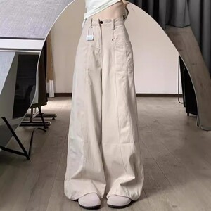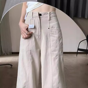 杏色设计感a字大喇叭阔腿休闲裤女春秋季高腰宽松拖地工装牛仔裤