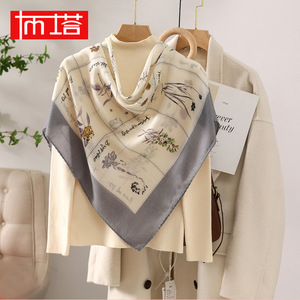 布塔秋冬款200支印花绵羊毛围巾女时尚水溶羊毛薄披肩4PT5542