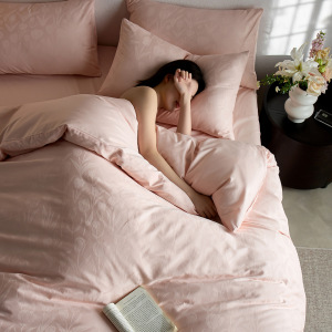 高端轻奢A类100支新疆长绒棉全棉贡缎提花四件套被套床笠纯棉