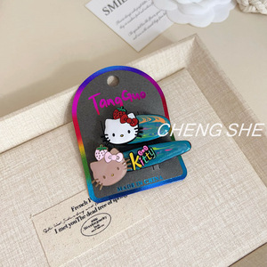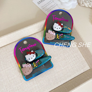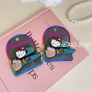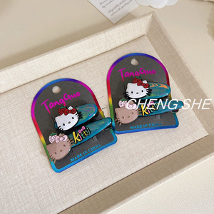 韩版新款滴油彩绘甜美KT发夹时尚高级感水钻爱心鸭嘴夹侧边夹发饰