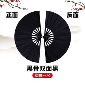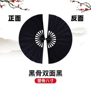 加密塑骨右手+送扇套-成人一尺-黑骨双面黑