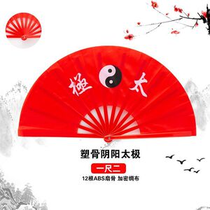 太极扇功夫扇子响扇无字红色塑骨广场舞武术表演儿童舞蹈