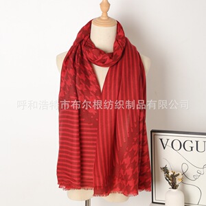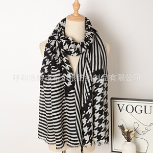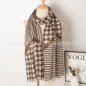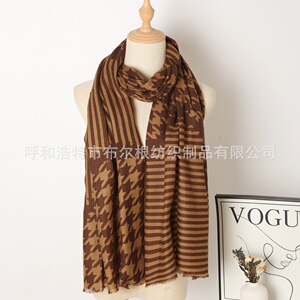 2025秋冬新款印花长巾条纹千鸟纯羊毛轻薄舒适面料围巾保暖