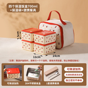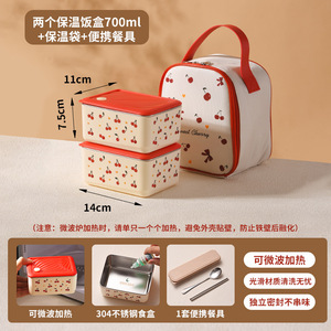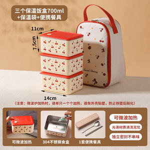 5年新款奶油樱桃上班族专用便当餐盒2304不锈钢保温饭盒可微波炉