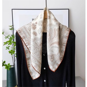 桑蚕丝真丝羊毛65丝毛淡雅腰果花方巾女士春夏季手工卷边围巾丝巾