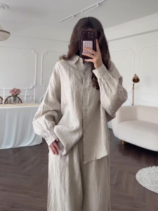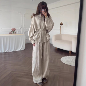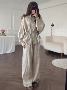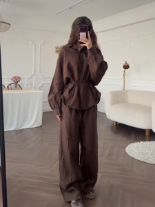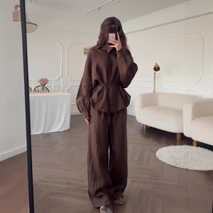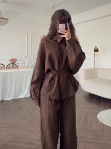 2025秋季新款翻领长袖上衣欧美亚马逊跨境外贸显瘦气质长裤套装女