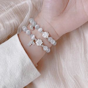 中式银莲花猫眼石手链招财纳福高级设计串珠精致手串闺蜜礼物