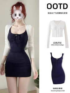 藏蓝色连衣裙甜辣妹绝美小裙子女夏包臀吊带掐腰a字短裙开衫套装