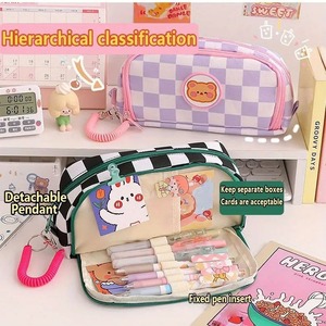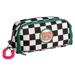 跨境爆品可爱卡通棋盘格笔袋手提ins大容量铅笔袋学生可一件代发