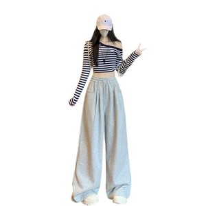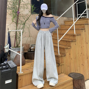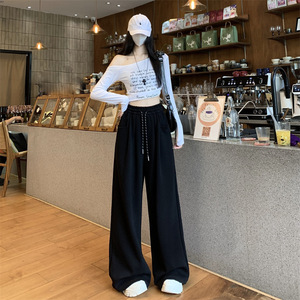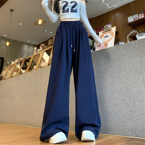 灰色百搭抽绳运动休闲裤女夏季新款垂感直筒高腰显瘦阔腿裤长裤