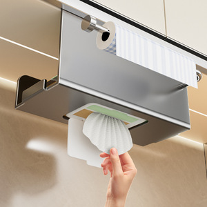 厨房纸巾架橱柜下壁挂式免打孔挂架保鲜膜卷纸收纳架多功能置物架