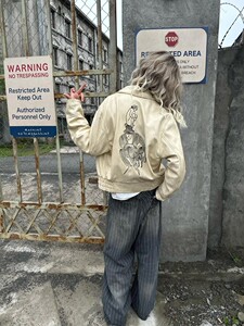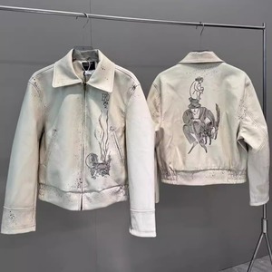 ERD忧郁的富二代重工刺绣泼墨神秘人小羊皮衣夹克外套短款男女潮
