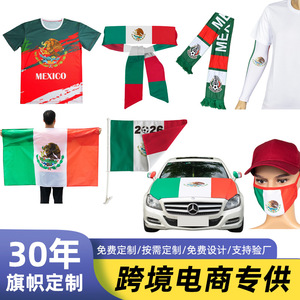 2026墨西哥球迷产品美加墨世界杯足球围巾T恤车盖套头带旗帜