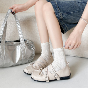 白色朋克芭蕾风浅口厚底单鞋女夏2025新款配裙子百搭复古玛丽珍鞋