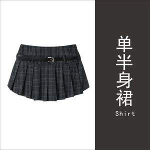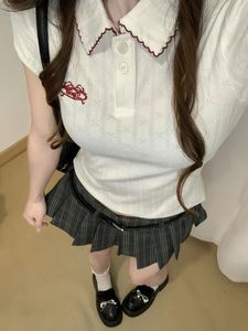 一整套2025夏季新款韩系学院风修身显瘦Polo领T恤上衣格子百褶裙