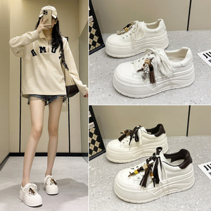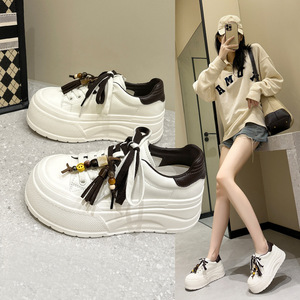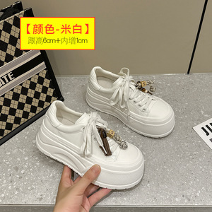 欧货2025 秋季新款松糕厚底小白鞋时尚系带纯色运动休闲板鞋