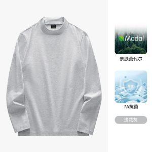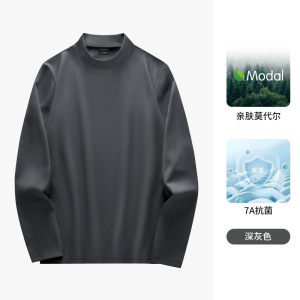 莫代尔半高领长袖t恤男士打底衫春秋装加绒体恤秋衣内搭中领上衣