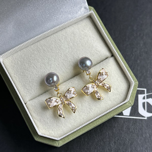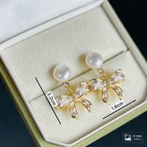诸暨天然淡水珍珠耳环女18K包金小众甜美滴油蝴蝶结珍珠耳钉批发
