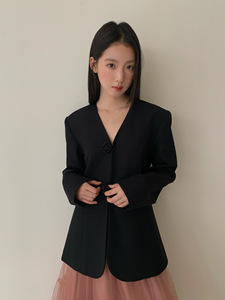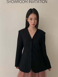 诠释美 NEWOPEN 25秋法式浮雕花朵扣气质高级感v领西装外套F6011