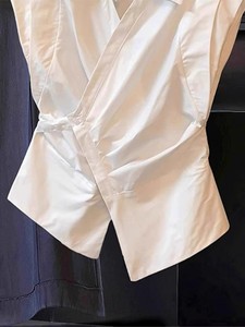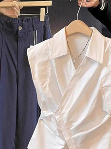 法式Polo领衬衫小飞袖T恤女2025新款夏季绑带收腰高级感无袖上衣