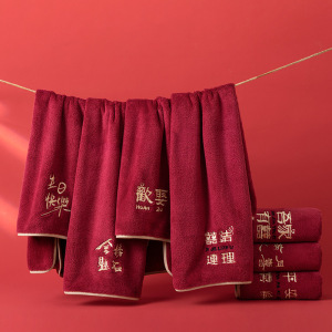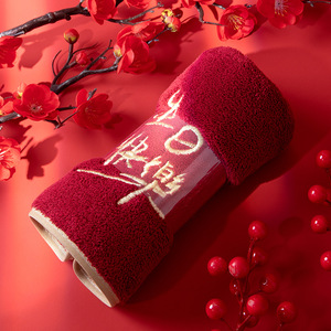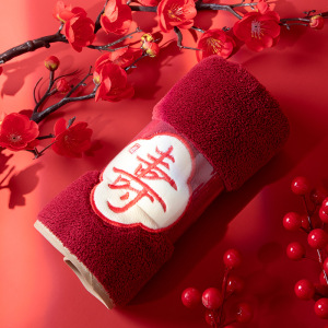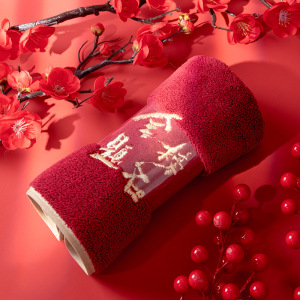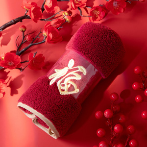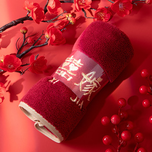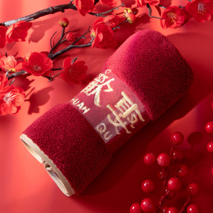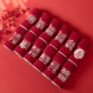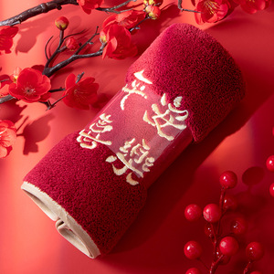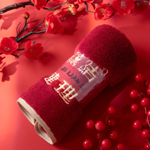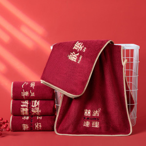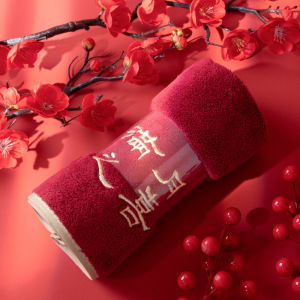 结婚毛巾一对红色喜庆礼品盒袋装陪嫁洗脸回礼伴手礼毛巾新娘陪嫁