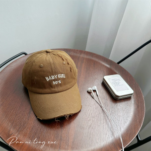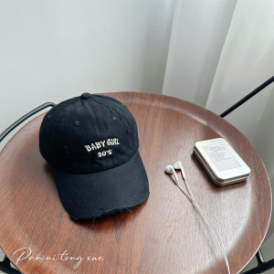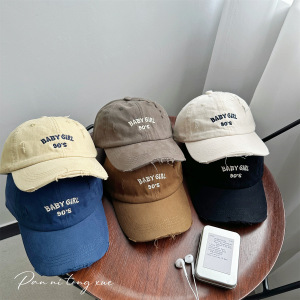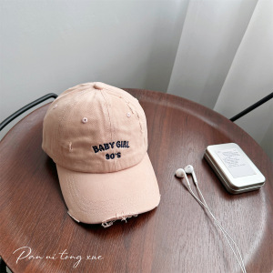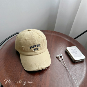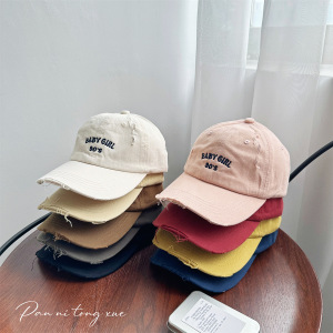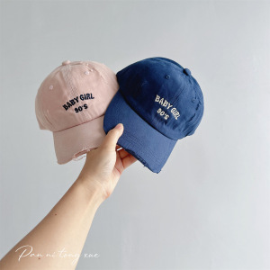 韩版新款儿童破洞字母刺绣棒球帽男女宝宝户外遮阳防晒鸭舌帽批发