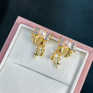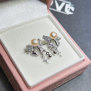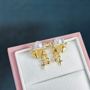 天然珍珠轻奢高级设计感璀璨星空蝴蝶结耳钉轻奢小众镶钻超闪耳环