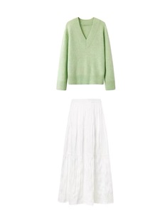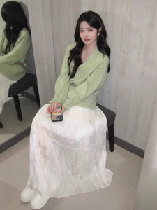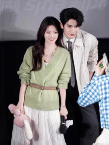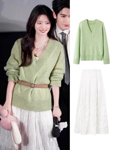 【现货】徐若晗同款绿色V领针织衫女2025春秋季新款爆款长袖毛衣