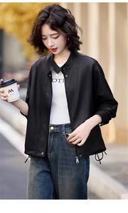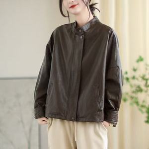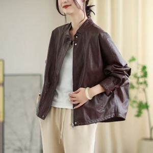 2025年秋款皮衣长袖宽松休闲韩版上衣新款皮衣夹克外套立领上衣