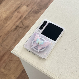 韩系拼接彩蝴蝶磁吸支架适用华为MATEX5/6典藏版折叠手机壳puraX