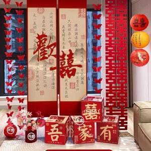 婚房布置套装结婚客厅晨袍喜字背景布条男方女方新房婚礼盒子装饰