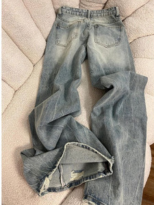 设计感磨破宽松直筒牛仔裤女夏季新款水洗做旧高腰显瘦拖地阔腿裤