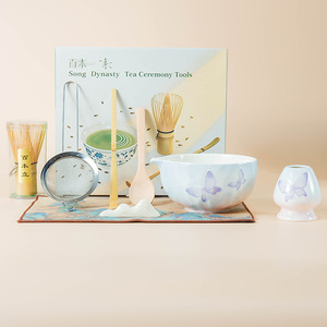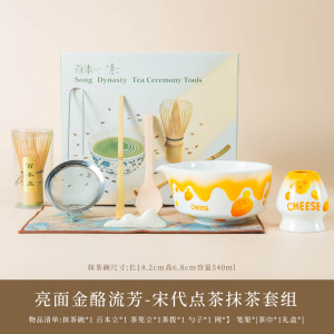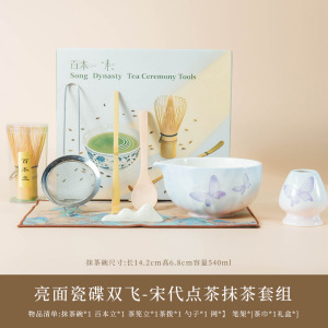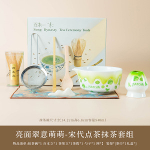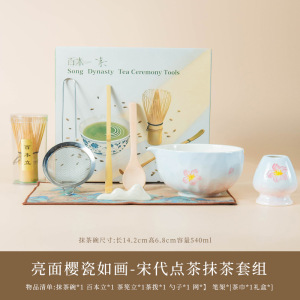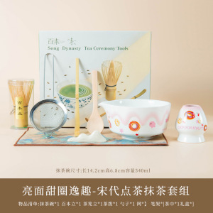 跨境日式卡通抹茶碗抹茶套装百本立茶筅立手绘图案抹茶套装