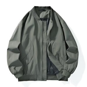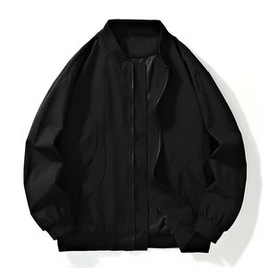 跨境代发美式纯色夹克外套男春秋季拉链棒球服宽松休闲夹克外套男