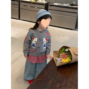 韩版童装秋新款女童洋气卡通提花针织开衫甜美可爱毛衣外套上衣潮