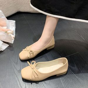 单鞋女2025新款百搭夏天浅口一脚蹬小皮鞋软皮软底低跟女鞋豆豆鞋