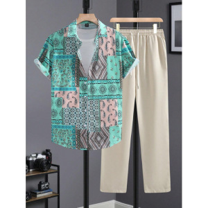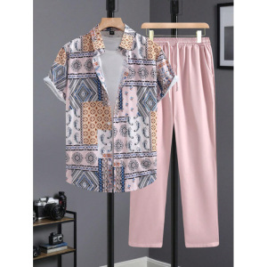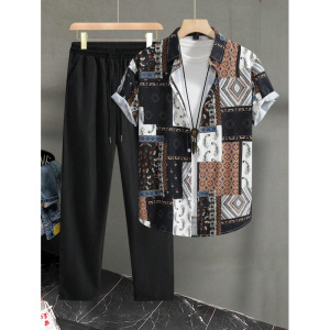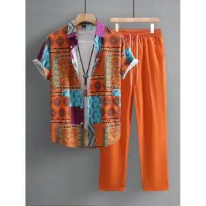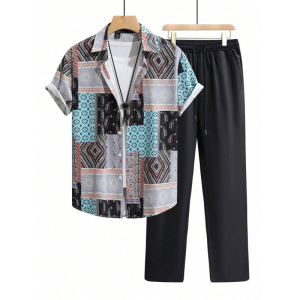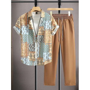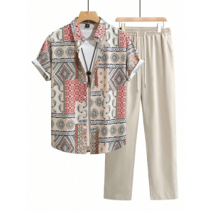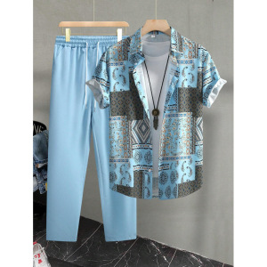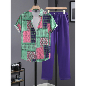 20253D数码印花跨境欧美外贸新款休闲民族风短袖衬衫长裤套装