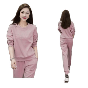 2025春秋季外贸跨境运动套装女时尚穿搭休闲跑步圆领卫衣两件套女
