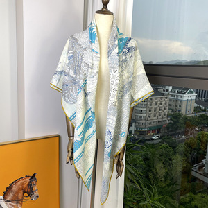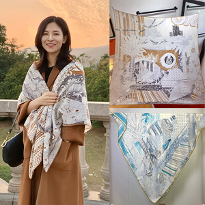 秋冬经典款仲夏夜之梦卡其色真丝羊毛130大方巾H家欧美风百搭围巾