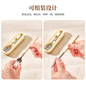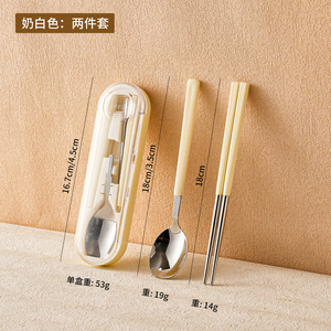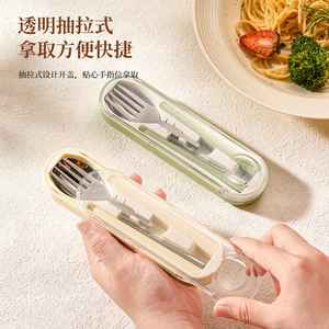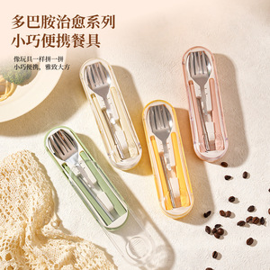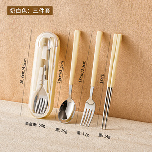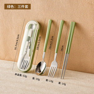 韩式304不锈钢餐具便携收纳盒北欧ins新品三件套勺叉筷子户外套装