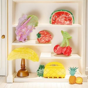 韩国醋酸拼色发夹时尚西瓜草莓抓夹简约气质鲨鱼夹弹簧夹发饰女饰
