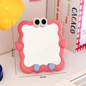 大眼仔饼干化妆镜桌面台式可立高清美妆镜宿舍可壁挂免打孔小镜子