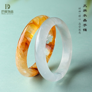 天然白幽灵水晶手镯女清透高级感天然黄胶花女士手镯首饰批发