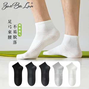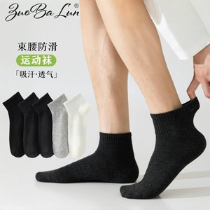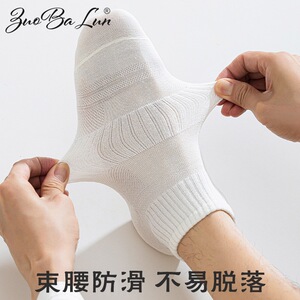 黑白袜子男夏季薄款短袜纯色透气防臭运动袜束腰按摩底男士棉袜子