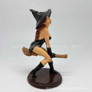 跨境新品万圣节Sexy Witch Bookshelf Statue骑魔法扫帚女巫雕像