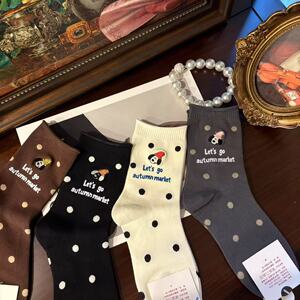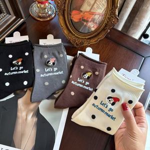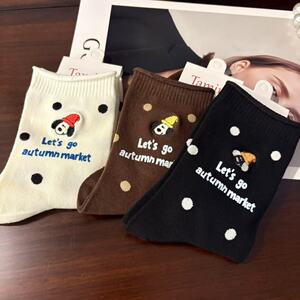 早秋可爱韩版刺绣小狗头像东大门带帽子小狗字母女中筒袜